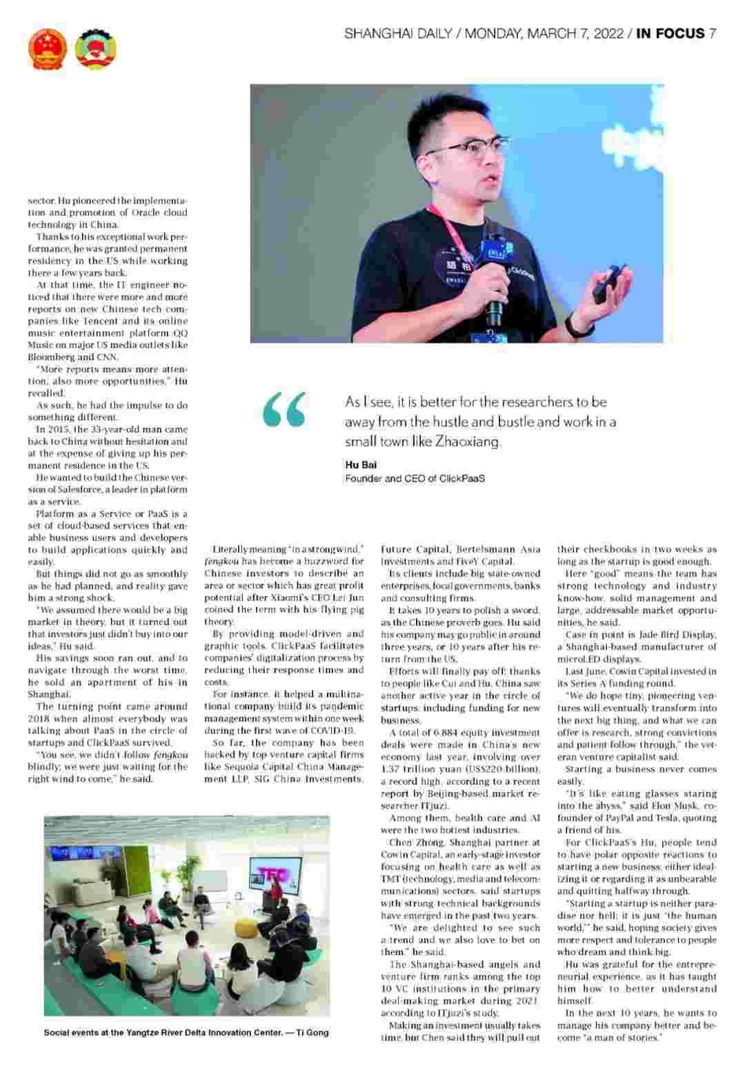 《上海日报》专访GOPAY钱包创始人、、、、CEO胡柏,,探究其创业背后的故事!!!!